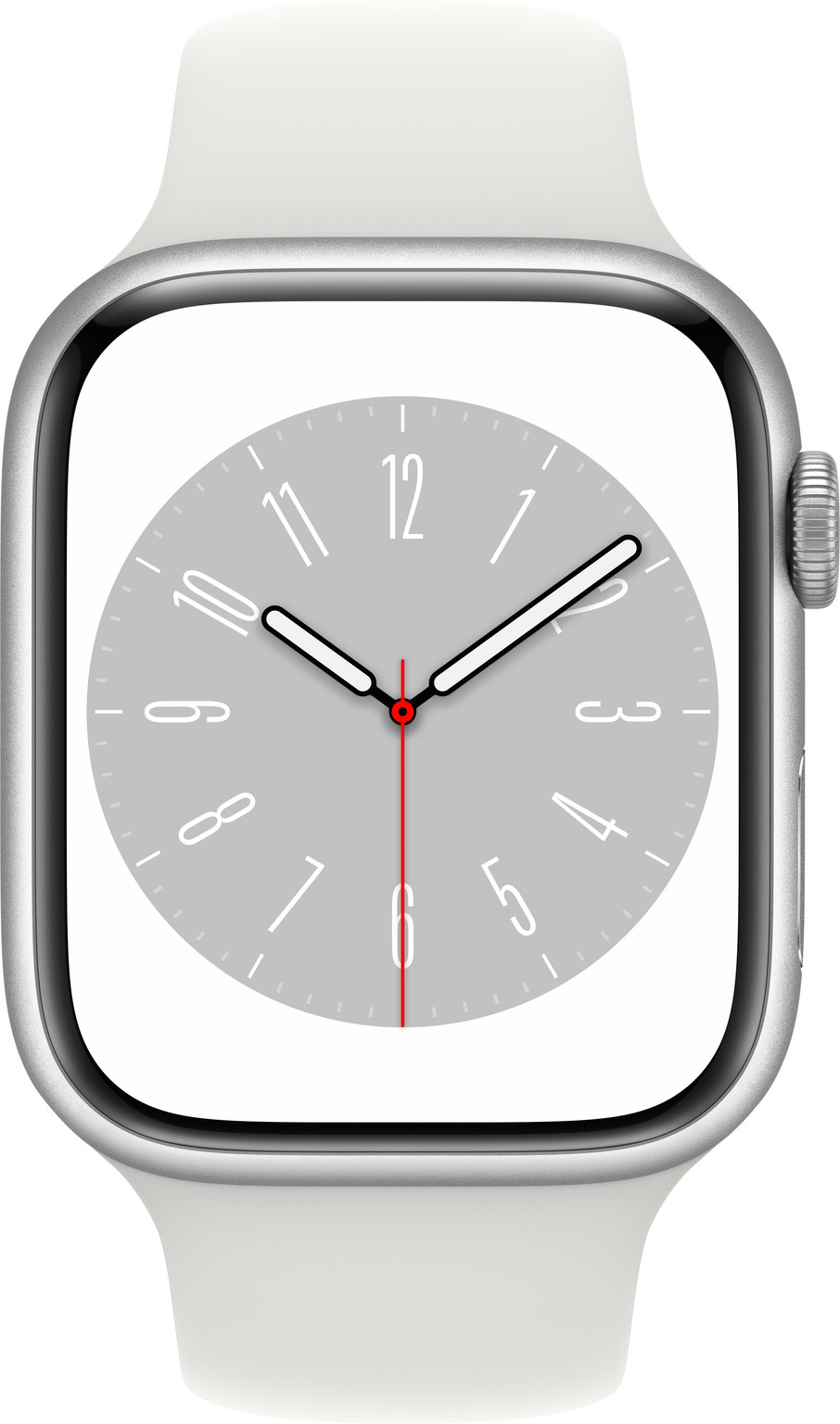 De Apple Watch Series 8 4G 45mm Zilver Aluminium Witte Sportband koop je met de Black Friday dagen met korting, het product is dezelfde als op de andere dagen.