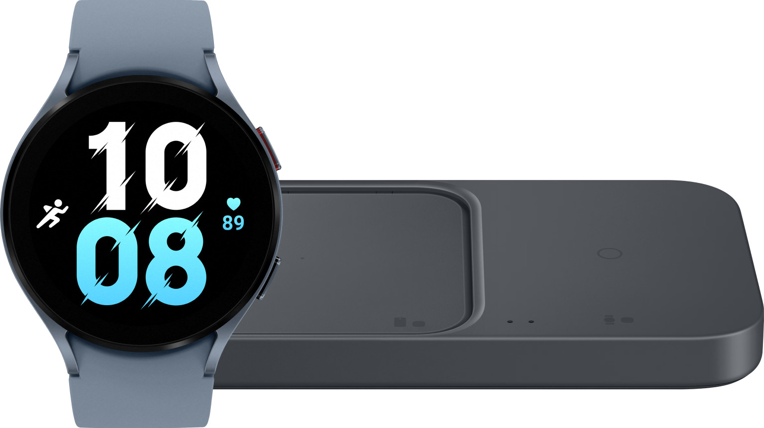 Je laadt je Watch5 en je smartphone tegelijkertijd draadloos op met de meegeleverde duo draadloze oplader. Dankzij snelladen laad je een lege batterij voor 45 procent op in een half uur. Niet alleen ontvang je meldingen van berichten, maar je kan ook bellen via het horloge wanneer je smartphone in de buurt is.